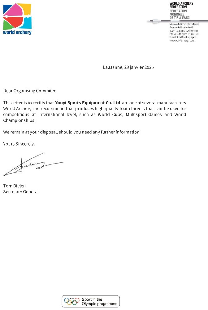 友誼體育將全力以赴,服務全國所有射箭比賽,服務國家隊、省市基層射箭隊等,提供優(yōu)質的射箭裝備和優(yōu)秀的賽事服務保障,為中國射箭事業(yè)的發(fā)展和推廣貢獻自己的力量。